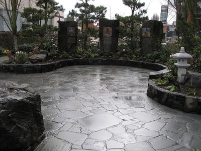 Dedicated in February 2007 in Eugene, Oregon, this garden was constructed by Jim Robinson, Daichi Landscape using local basalt for the walls and tumbled bluestone step and flagstone for the paving. Heritage Stone provided engraving of the donor stones.